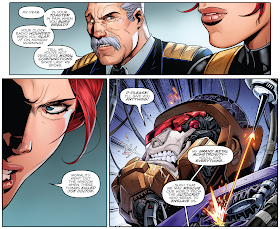 Which leads me to my next point... Cullen Bunn and John Barber's story doesn't work on its own terms, either. It's a jumble of characters no one gives you a reason to care about. Like, M.A.S.K. supposedly has a moral dilemma when they realize Transformers are sapient, but their characterization is so flimsy, and the reasons so nonexistent, that you can't get interested in this dilemma. But if you don't care about that, all you've got left is people in super-cars... which is not interesting, and doesn't play to the strengths of the comics medium. Exactly who was doing what when with a magic space rock was another thing I could never really discern. Say what you will about the Anti-Monitor (and I have), but he provides Crisis with a focal point. Revolution is murky. What's at stake? I dunno.